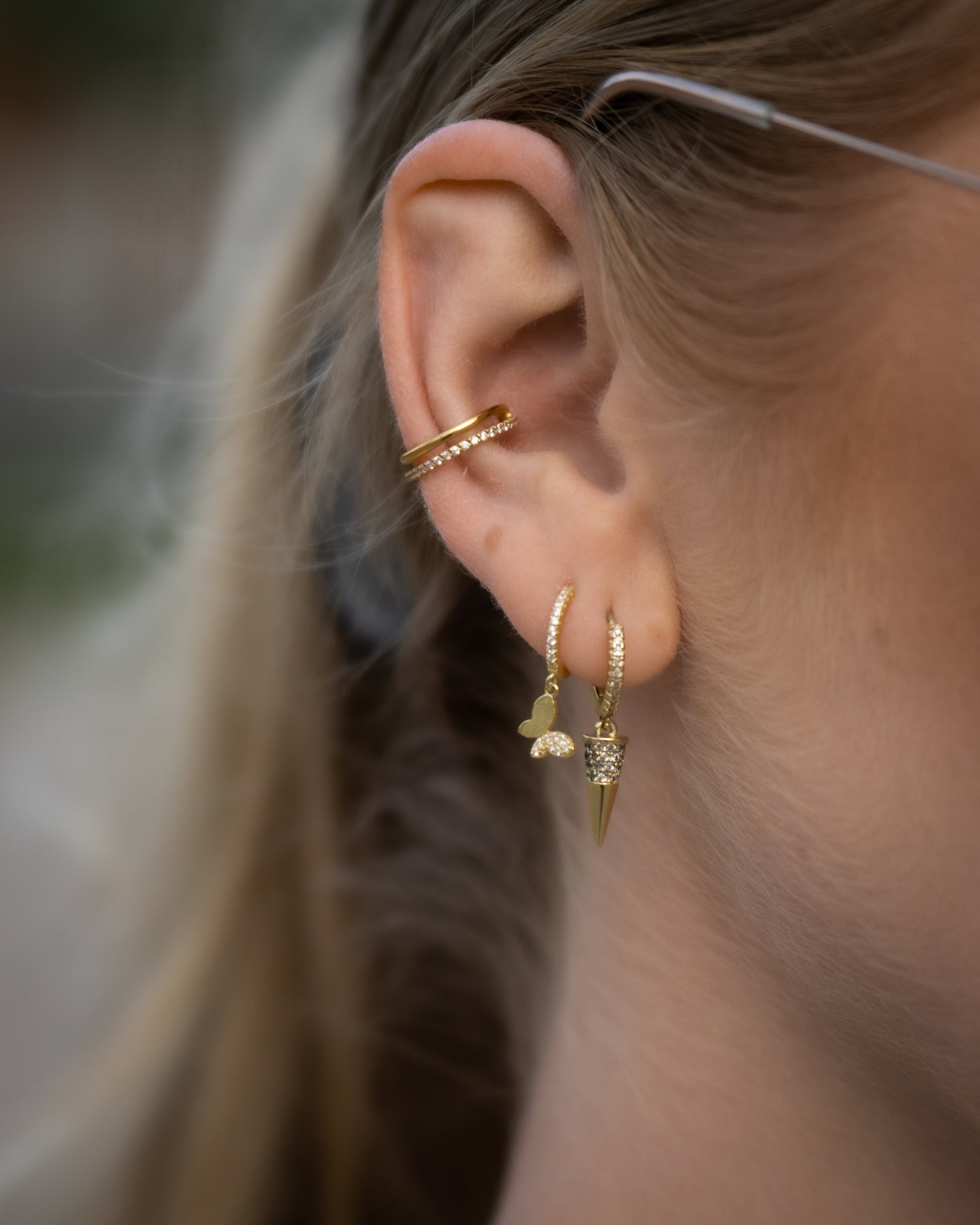 Häftiga spike örhängen i 925 sterling silver med guldplätering och cz-strasstenar.